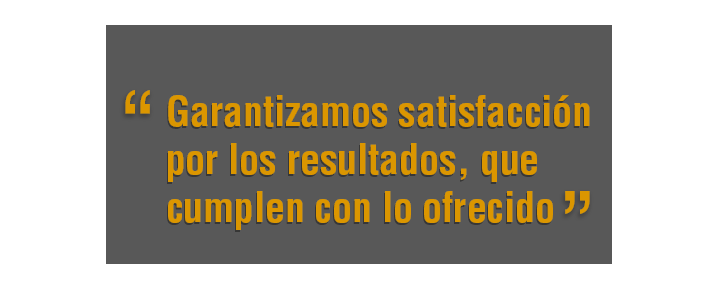 en el cliente. Garantizamos satisfacción por los resultados, que cumplen con lo ofrecido.