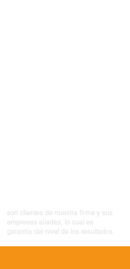 Corporaciones reconocidas son clientes de nuestra firma y sus empresas aliadas, lo cual es garantía del nivel de los resultados que ofrecemos.
