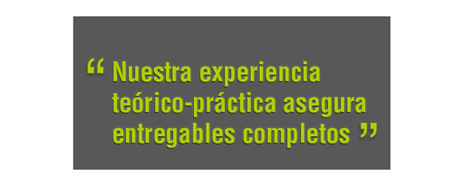 Servicio integral de consultoría: entendemos las prioridades del cliente. Anticipamos los beneficios vía victorias tempranas, consideramos múltiples aristas: gente, procesos, métricas, cliente y tecnología. Nuestra experiencia teórico-práctica asegura entregables completos, adecuados y de calidad y soluciones efectivas.