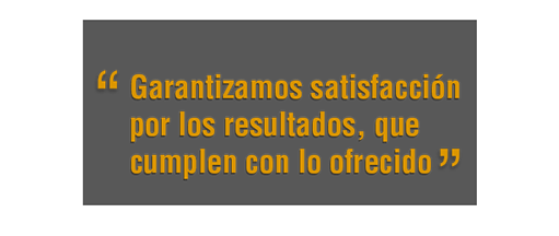 de una vez. Transferencia de conocimientos que se quedan en el cliente. Garantizamos satisfacción por los resultados, que cumplen